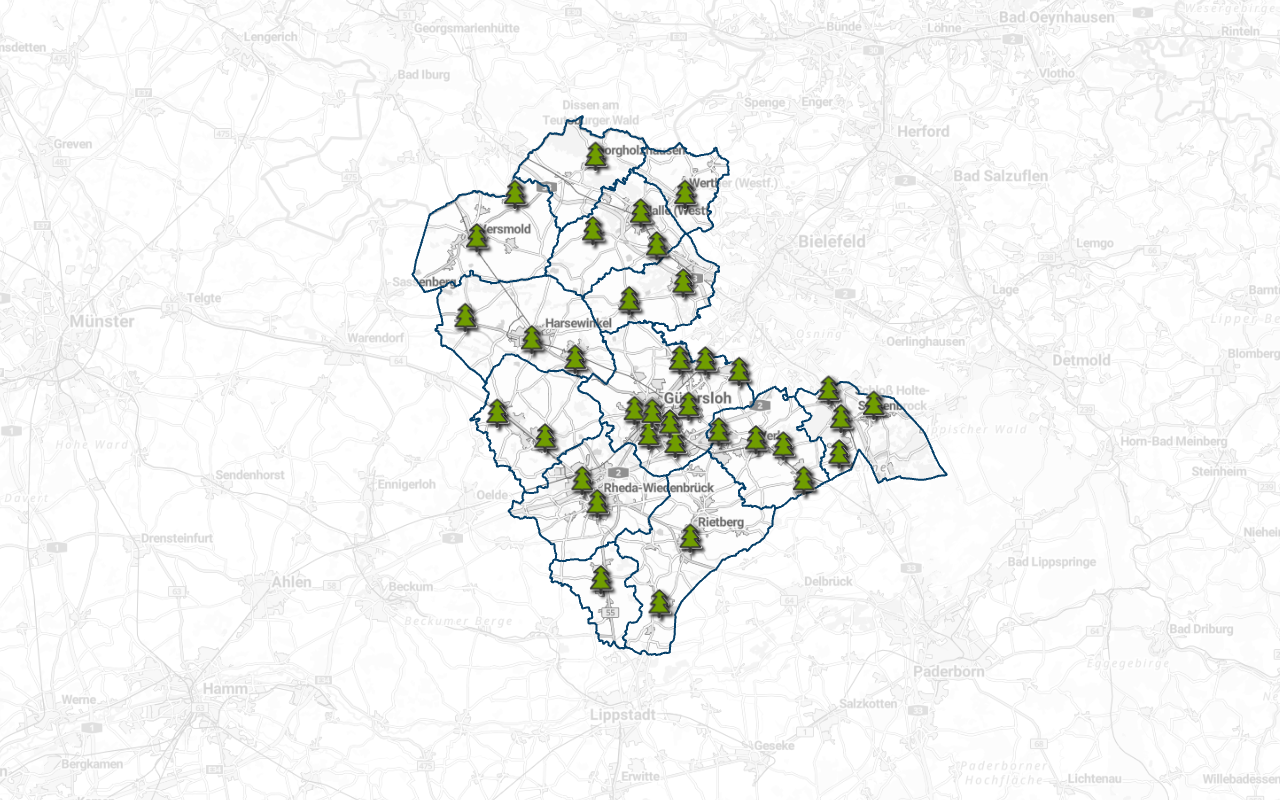 Für ein Zusammenkommen sind die Weihnachtsmärkte in dieser Zeit geeignete Orte. Dort kann man mit seinen Freunden oder der Familie an den unterschiedlichsten Ständen etwas essen und trinken oder in gemütlicher Atmosphäre einfach nur bummeln. Daher handelt unsere Karte des Monats von den Weihnachtsmärkten im Kreis Gütersloh und zeigt, wann und wo diese stattfinden. Der gezeigte Datensatz erhebt jedoch keinen Anspruch auf Vollständigkeit. Den vollständigen Beitrag finden Sie hier.